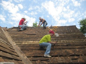 [caption id="attachment_91" align="aligncenter" width="225" caption="ripping off the shingles"]